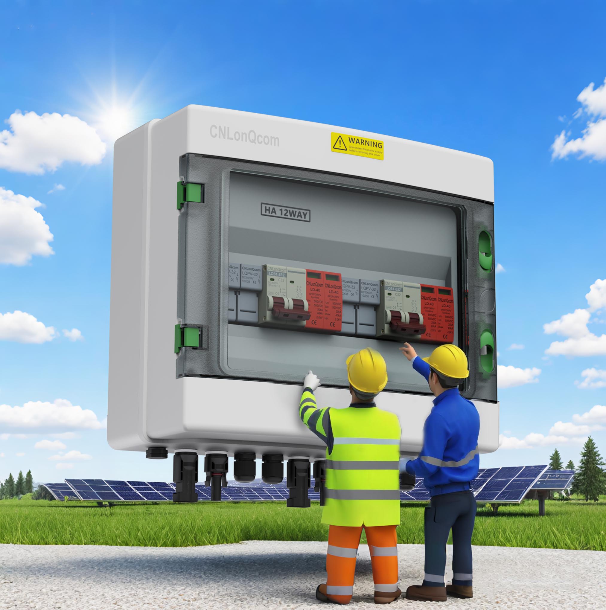 ✔ Kotak Combiner → Melindungi rentetan PV individu.
