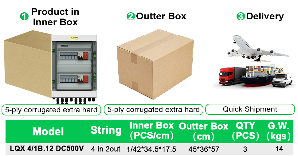 PV Combiner Box 4 dalam 1 keluar DC500V/600V/800V berkesan melindungi inverter dan panel solar dari kerosakan dan menghantar dari api.